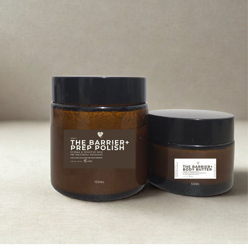 THE BARRIER+BLEMISH BODY SYSTEM for Eczema & Psoriasis | 100ml Prep Polish & 50ml Butter Balm